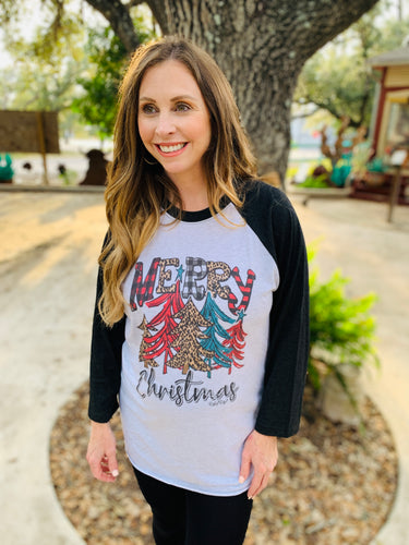 Christmas Cheetah & Turquoise Raglan Tee