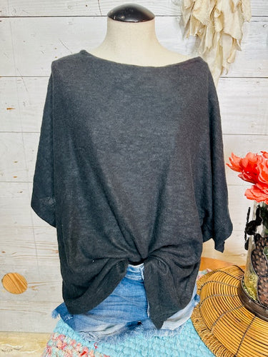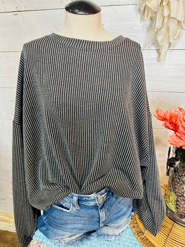 Round Neck Textured Boxy Cut Top with Short Balloon Sleeves