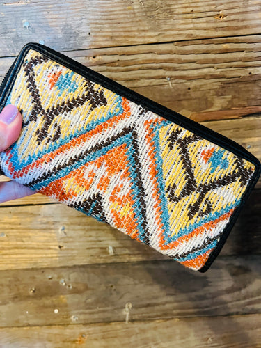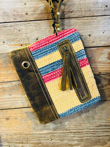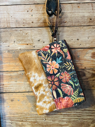 Navy & Mustard Abstract Cowhide Wristlet