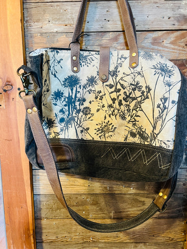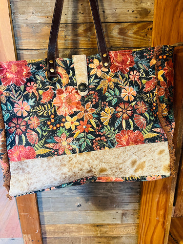 Grey Floral & Fringe Tote