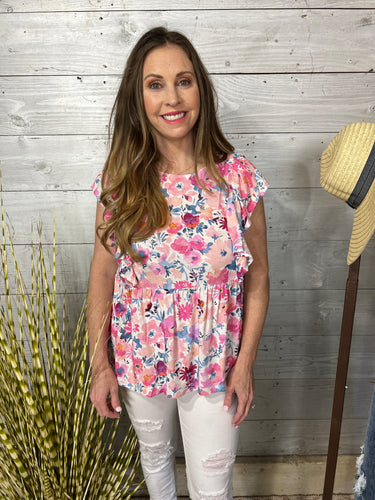 Spring Floral Flutter Top