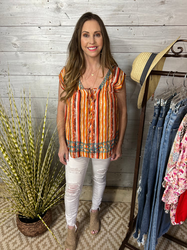 Colorful Aztec Print Denim Top