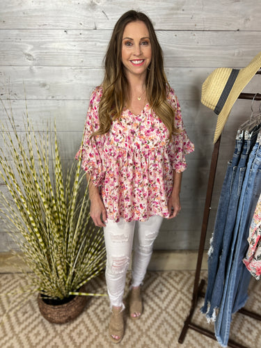 Blush Floral Ruffle Blouse