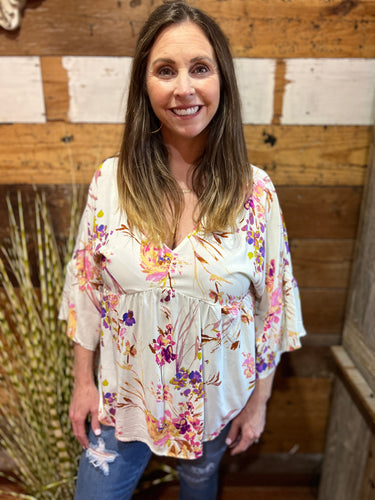 Ivory Floral Bell Sleeve Top
